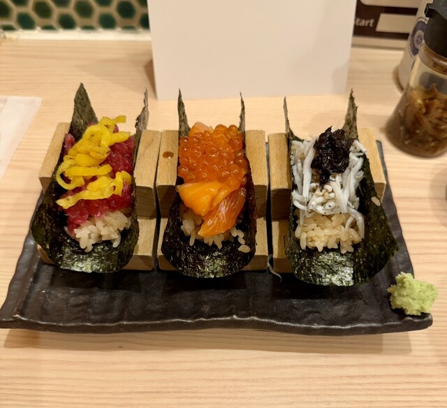 カブのタラコソース、マグロステーキ、牡蠣のタルタルソース、貝出汁焼きラーメン、手巻き3種類等のアレンジのコースでいただいたのですが、その中でも海鮮しゅうまいは絶品でしたね。