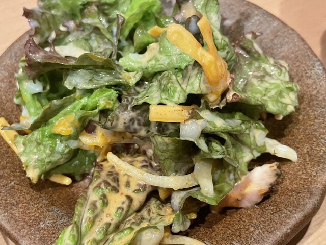 食事はお通しのバンバンジーから。マヨネーズの加減がビールにピッタリ合いました。