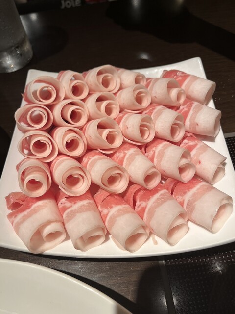仕事関係だったので詳しい値段やコースは把握していませんが、野菜多めのコースだったと認識しています。鍋のスープはかなり辛くした赤いスープと白いスープでした。