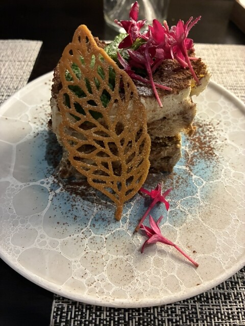 予約してワインペアリングのコースを頂きました。女性客であふれる、おしゃれなお店でした。ワインは一つずつボトルをおいて見せてくれます。前菜のプレートが美しくて、ここがピークかもしれません。ワインと一緒に順番に頂いたら、幸せな気分になりました。そのごもよかったですよ。