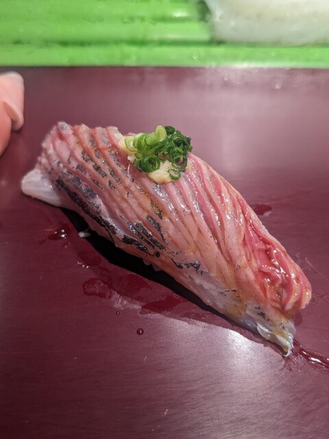 白子は普段は天ぷら派で寿司ではあまり食べないけど、職人さんのおすすめで炙りと塩で食べてみたら、白子らしい香りとクリーミーさ、がいい感じに口の中に広がって、バランスが良く、美味しかった〜