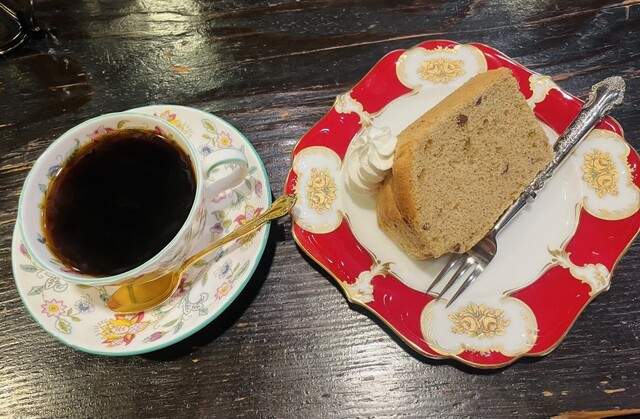 シフォンケーキとコーヒーのセットにしましたが、香り高いコーヒーは酸味がなく飲みやすくてとっても美味しかった!