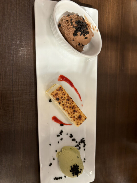 チーズケーキとピスタチオアイスがデザートです❤️