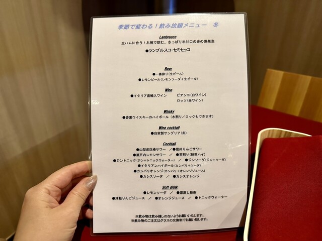 季節で変わる飲み放題メニュー(冬)