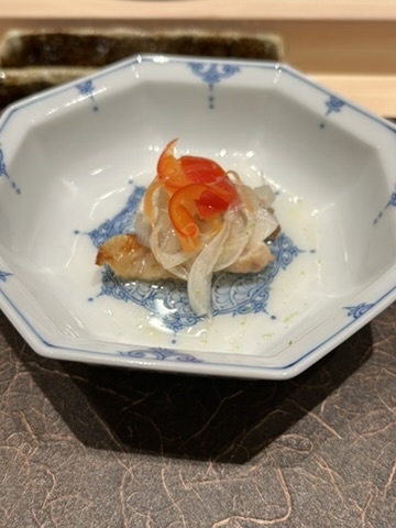 串は全体的にレベルが高く、特に火入れの精度が安定している。肉の水分を残しながら、表面だけをきれいに焼き切る技術があり、噛んだ瞬間の香りと旨みの立ち方が非常に良い。塩の使い方も控えめで、素材の輪郭を壊さないバランス。突出した一串というより、コース全体を通しての完成度の高さが評価されるタイプです。