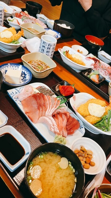 市内からはかなり遠いのですが行く価値あります!竹定食、松定食はお刺身おかわりし放題!なんですが、既に写真の通り最初から20切れ近くの刺身がやってきます笑