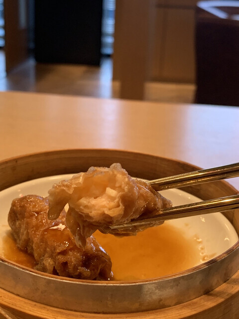 その中でも湯葉揚げ蒸しは湯葉がジュワッとエビ餡の旨味を染み込ませていて最高です