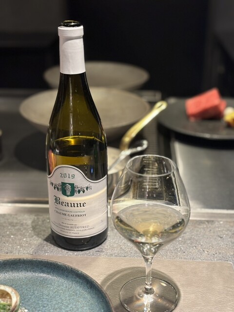ここで、珍しい白ワイン「ボーヌ ショーム・ゴーフリオ ブラン2019」をいただきましたが、飲みやすすぎて何杯もリピートしてしまいました。