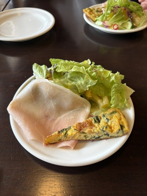 ミニサラダは“ミニ”と言いながら、生ハムとキッシュ付き。