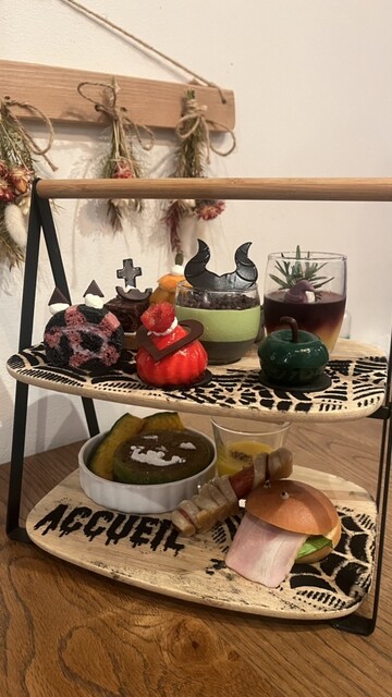 ドリンクが飲み放題なのもありがたかったです。2段食べるとかなりお腹いっぱいになりました。ハロウィンを先取りで楽しめたし美味しかったです!!