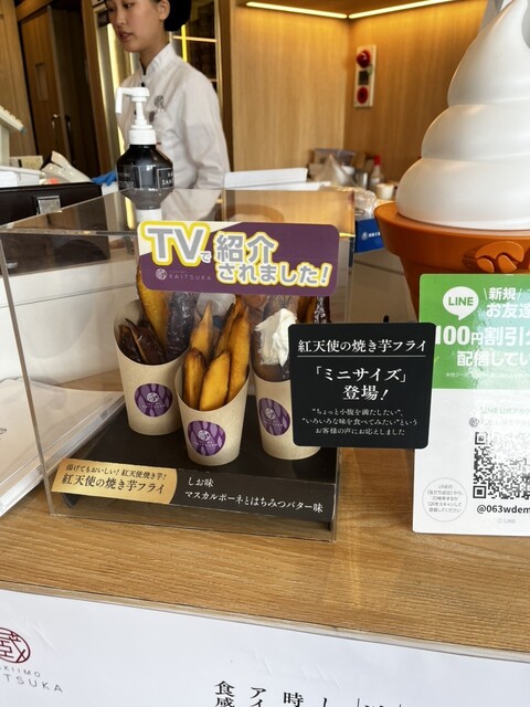 紅天使を使用したカフェ料理がたくさんあり、季節によってメニューも変化します。この日は紅天使の焼き芋クレープと、紅天使の焼き芋フライを頼みました。正直、紅天使の焼き芋クレープこれで550円はコスパ良すぎです!ボリューム満点これだけでお腹いっぱいになります。焼き芋のフライはTV紹介されただけあって絶品!こちらもボリューム満点で初めて食べる方にはこちらがオススメ。ハーフサイズもあります。私はマスカルポーネとはちみつバタートッピングがすごく美味しくて好きでした。また行きたいです。
