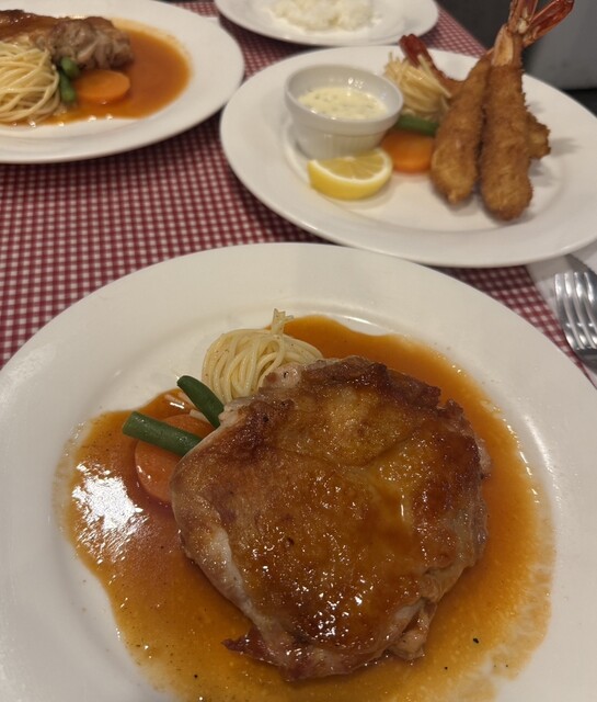 グリルチキンとエビフライはビフカツと並ぶ絶品メニューだから、是非食べてもらいたい、エビフライのタルタルソースも美味しい!グリルチキンはじっくり焼くため時間がかかる 混んでる時は30分はかかる