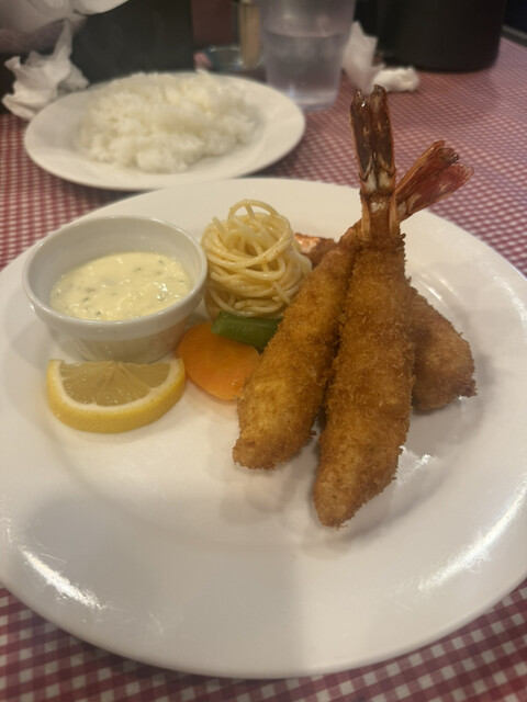 グリルチキンとエビフライはビフカツと並ぶ絶品メニューだから、是非食べてもらいたい、エビフライのタルタルソースも美味しい!グリルチキンはじっくり焼くため時間がかかる 混んでる時は30分はかかる