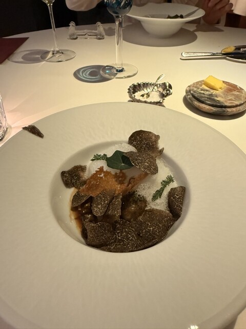 退院していくのをずっと楽しみにしていたアランデュカス アミューズからこれは何?と説明できない複雑な美味しいお料理の数々、フランスから空輸され飾られていたアンティークリモージュや銀器、テーブルの設えもグラスも素敵すぎる 退院直後でお酒は、飲めなかったのが残念でしたが、嫌な顔一つされずサービスは一流でした、フランス産トリフをエキストラで頂きました、一つ一つ驚きでしたが静かで優雅な一時を美味しいお料理を美味しいと頂ける幸せと共に堪能した夜でした