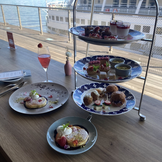 今回はアフタヌーンティーセットは食べました!無料で誕生日プレートなども出てきて海辺のカフェでゆっくり休むことができます!デートや女子会は本当におすすめです!