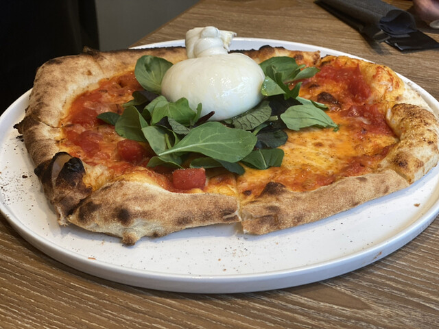 ひとつひとつの料理のレベルは高い!ブッラータピッツァはチーズが真ん中にありそれを切るととろけるチーズが真ん中から飛び出ます!!