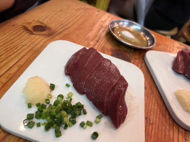 レバーが本当に美味しい!!写真撮り忘れましたが、2皿一人で食べた。塩ごま油が付いてくるけど致死量の塩が入ってるからよけながら油に浸して頂く(*^^*)レバーは(自己責任)で炙る程度。濃厚モギッとフレッシュなようなねっとりのような、肝臓の旨み広がる〜!筋?門脈?血管?の部分があるところが当たると噛み切れないけどそんなの許容範囲内無問題!!