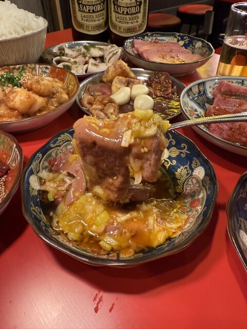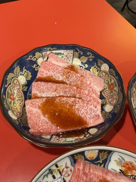 和牛はサシが綺麗でごはんや千切りキャベツなどと相性抜群、焼肉タレはわりとさっぱりしていてお肉の味を引き立て良い仕事してます。