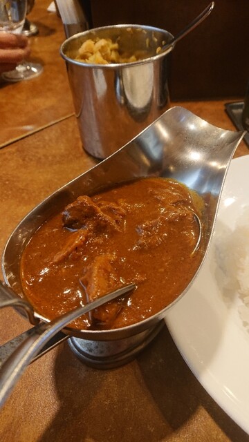 塚口駅近くのアングルさんにお邪魔しました。店内は8割お客さんで埋まっていました。特選ビーフカレーのセットを注文しました。まずはサラダが来ました。サラダを頂いている間にカレーが出来上がりました。ルーとライスは別で盛られてます。ルーはカレーポットに入っておりTHE欧風カレーて感じがします。お肉がゴロゴロしていて美味しそうです❗ライスの上にルーをかけて一口❗こくがあって美味しいルーです❗辛さはそんなに無いので子供も楽しめると思います。肉も柔らかく煮込まれ大変美味しいです❗刻んだザーサイが置いてあるので口直しに良いと思います。あっという間に完食です。食後にババロアを出して頂きました❗甘めですがパイナップルが乗っておりさっぱりしました。美味しい欧風カレーで満足しました❗ご馳走様でした❗