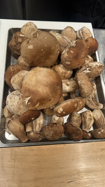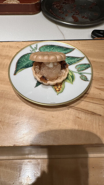 2ヶ月に一度のペースで頂いておりますが、今回は松茸、ポルチーニ、秋刀魚、栗、イチジク、を美味しく頂きました。ポルチーニは写真でもおわかりのように迫力満点でねっちょりしたお料理は初めてで美味しいかったです!デザートの栗クレープも絶賛でした!エルメスのお皿も素敵で嬉しいです。