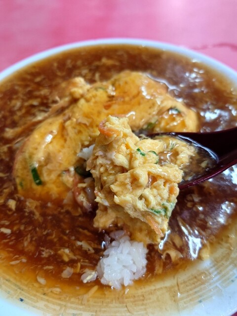 甘めの醤油ベース餡の天津飯は評判どおりに美味しいです。クセになりそうな餡だと思います。