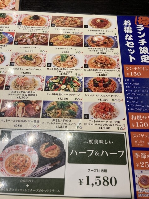 ランチセットの時間に間に合ったのでホタテと湯葉の入ったペペロンチーノを注文しました。