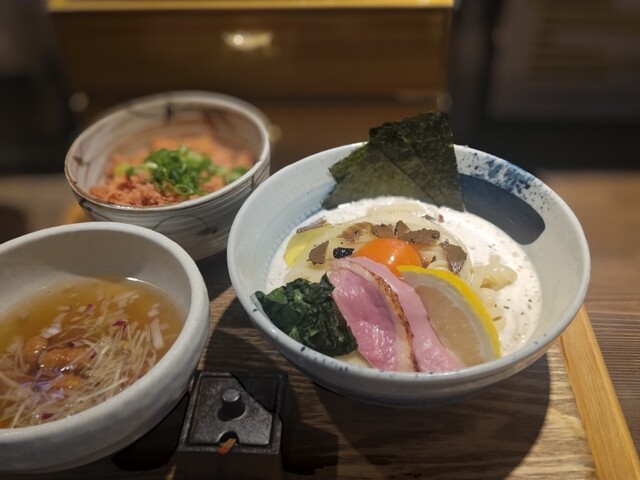 キャビア、メンマ、味変用レモン別皿味玉