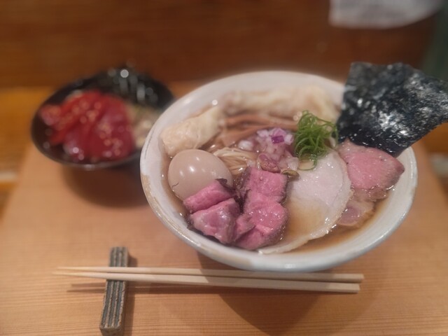 一緒に和牛チャーシュー、白飯と追加ワンタンを
