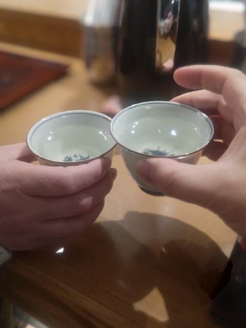 日本酒をいただきながら待機