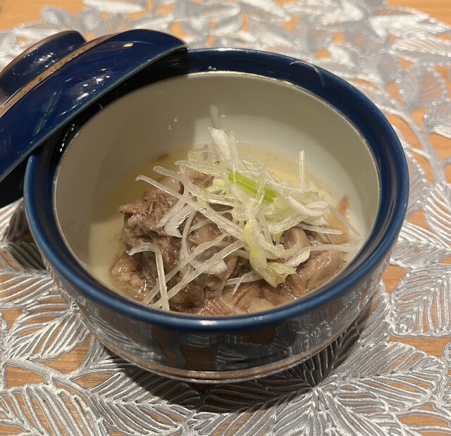 温物の牛すじ煮込み 柚子胡椒添えは、ほろほろに煮込まれた牛すじに柚子胡椒の爽やかさがアクセント。
