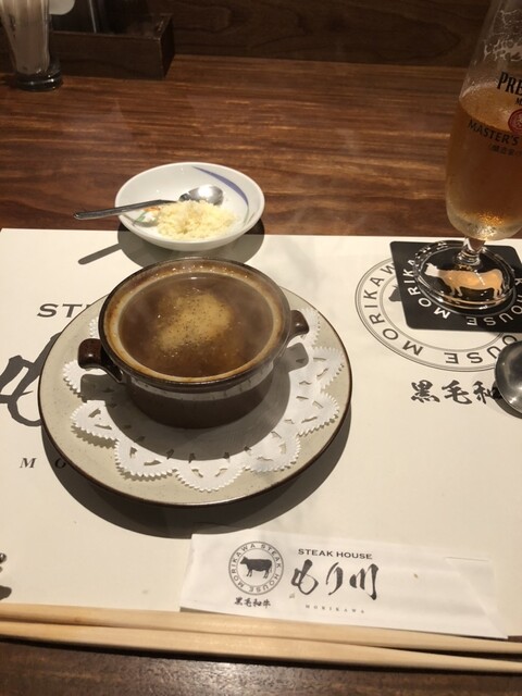 オニオンスープ熱々で粉チーズもかけ放題でした。