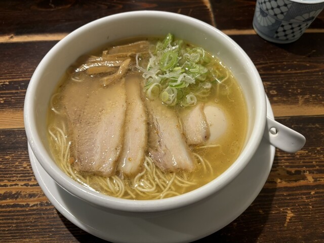 電車の駅から少し遠いですが、市バスを使用して訪問しました。時間帯によりますが外まで行列ができることもあります。今回は1人だったのもあり、並ばずに入店できました。香そば塩の全部のせを注文しました。にんにくの香りもよく、あっさりとした美味しいラーメンです。