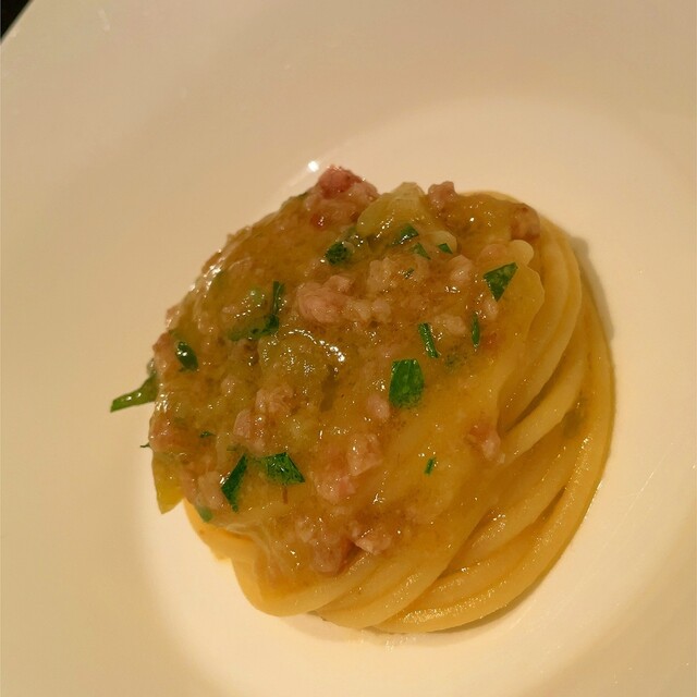 撃ち抜かれました。蟹の香りと旨味、麺の風味と食感、オイルのまとい方まで、すべてが見事。