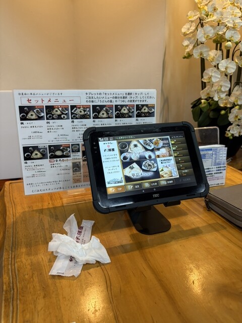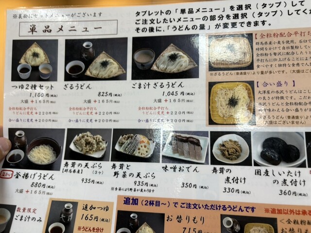 メニューを吟味して、ザルうどんと舞茸天ぷら1つと小鉢が2品着いてるセットを注文
