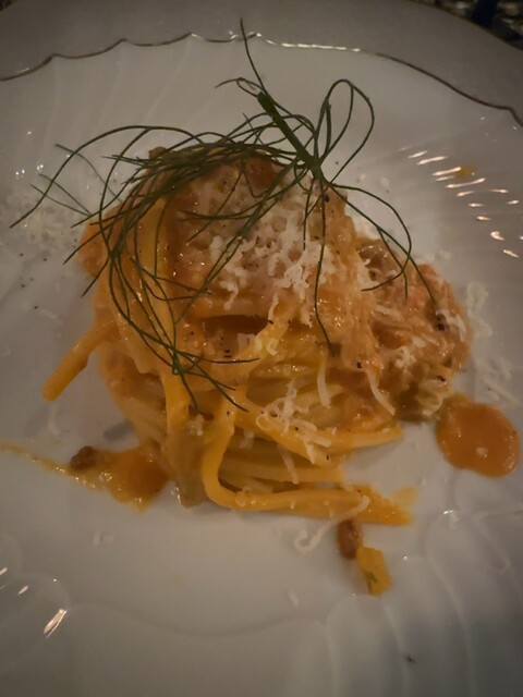 乃木坂駅からすぐの好立地。予約したので待ちなしです。チームディナーで前菜パスタメインスイーツのコースに追加パスタやリゾットやチーズ、さらにワインを結構飲んで1人2万円くらい。どの料理も美味しかったです^_^