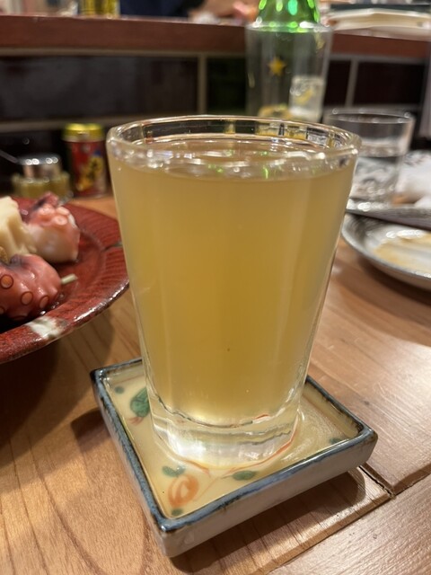 ★つなしの出汁割り(おでん出汁×日本酒) オススメ: 金粉が入った七味唐辛子を軽く振りかけて飲むスタイル