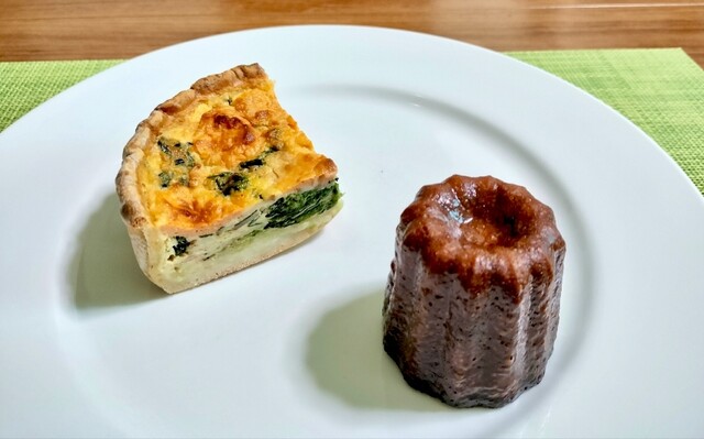 今回は、バジルチーズと牛カレーの巻き込みベーグル、ラム風味のカヌレ、キッシュを購入。