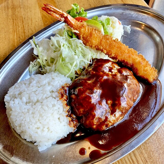 ・ハンバーグ・エビフライ・ライスの盛り合わせ