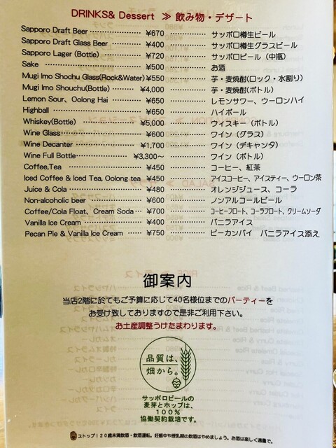 ・サッポロラガー 中瓶 税込700円