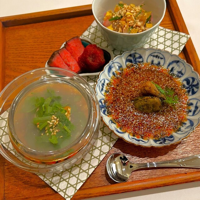 御⽥町 桃の⽊には2回ほど伺っておりますが、久々に小林武志シェフのお料理をいただきました。