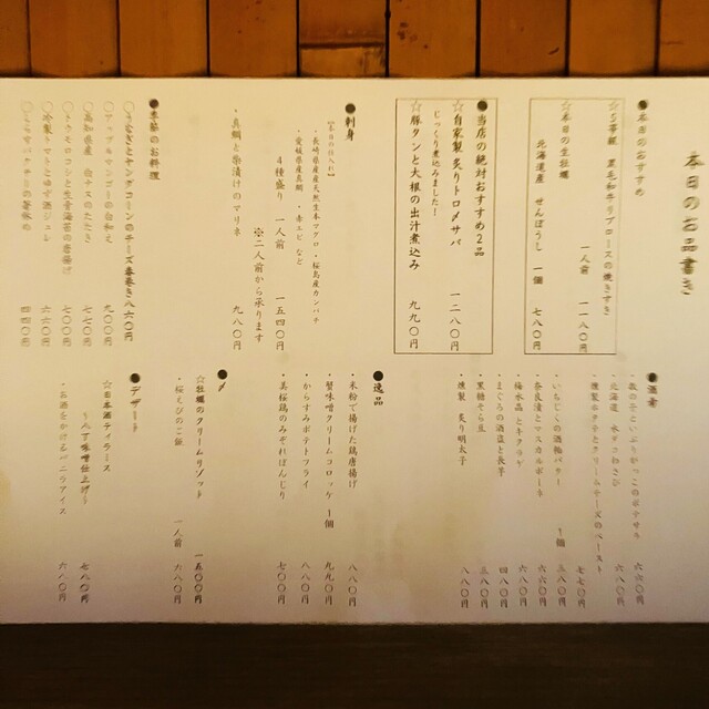 20250602本日のお品書きメニュー