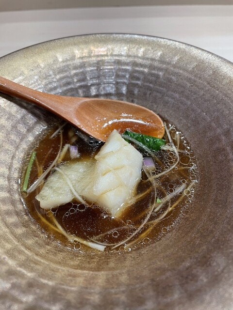 昆布水仕立てのくず素麺鮑と雲丹のせ