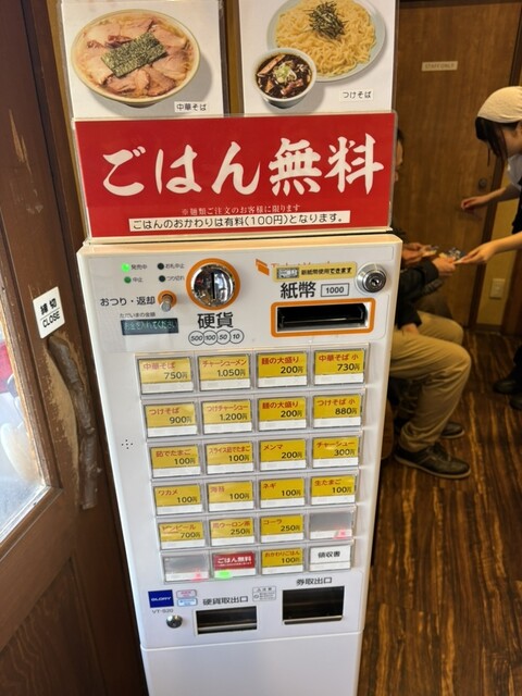 ライスは無料券のボタンが券売機に有るので