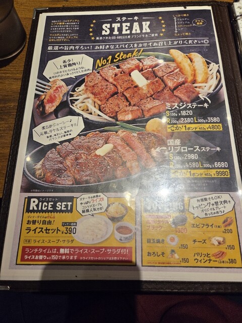 ステーキ食べたい方は是非ここへ!肉を食べた感があります!初めてだったので、色々と悩んで、ステーキとハンバーグのセットにしました!
