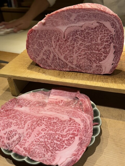 和牛と中トロが中に入ってる手巻き寿司!