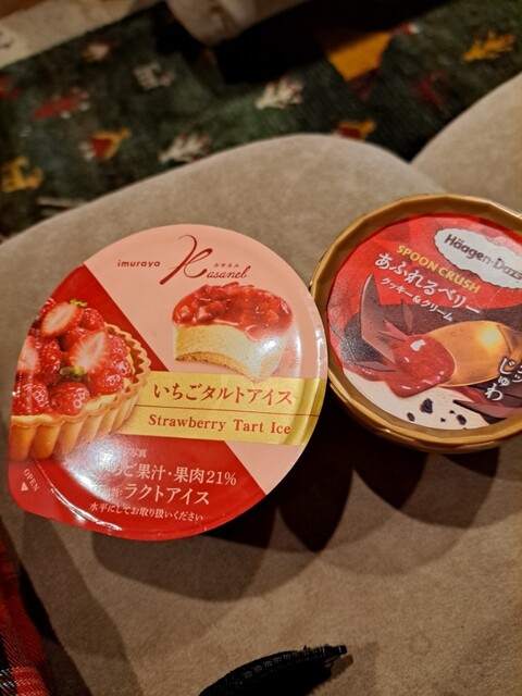 いつも夕飯外食の際にはデザートを買って帰るマイバス。今日は楽しみにしてたハーゲンダッツの新商品パリジュワを購入。食べ比べで食べたことのないいちごタルトアイスも購入。結果ベリーソースの味が似てるので同じような味に感じた。ならばチョコ系の方が良かったかなー。