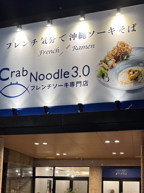 白蟹SOBAの平麺¥980に蟹ジューシー¥300