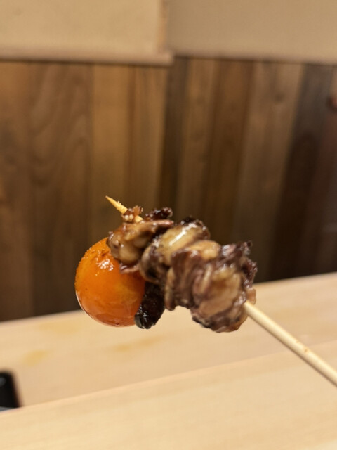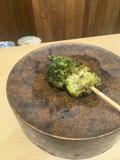 だが、野菜。野菜である。今宵、私の心と胃袋を掴んだのは、串の間に潜む緑の魔法たちだった。ズッキーニ、オクラ、ブロッコリー、そしてシイタケ。その一本一本に、剛田商店という名の八百屋の矜持が宿っていた。そして、それを川村大将が炭火の詩人として、完璧な火入れで昇華させる。あれはもはや「グリル」ではない、「野菜の舞踏会」であった。