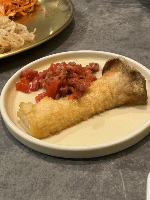 「エリンギ揚げ 和牛タルタル添え」は、まさに異色のペア。サクサクの茸に濃厚タルタル、まるで森で出会った貴族と庶民のラブロマンス。思わず「これが現代のロミオとジュリエットか…」とひとりごちた。
