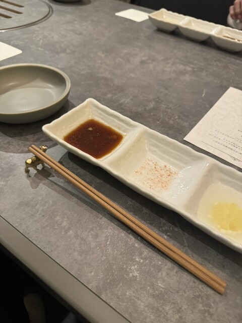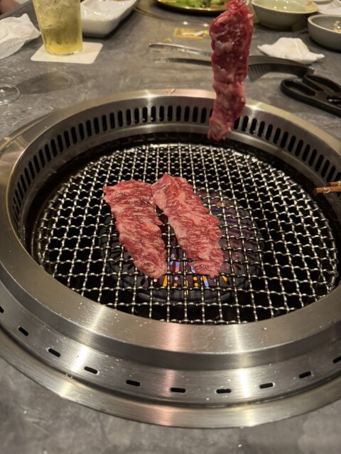 暖簾をくぐると、黒を基調とした落ち着いた空間が広がっていた。外観は控えめながら、内に秘める情熱は火山級。椅子に腰かけた瞬間、ふわりと肉の香が鼻をくすぐり、胃袋が前奏曲を奏で始めた。